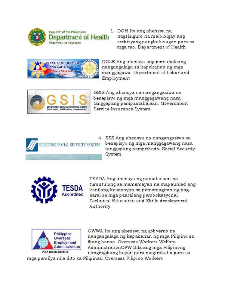3302017 Government Service Insurance System Technical Education and Skills Development Authority TESDA Current Secretary. Nangangalaga sa mga bumibili ng bahay at lupa pati narin ang mga subdibisyon. Ano ang mensaheng ipinaparating ng tambuli ni ilig.