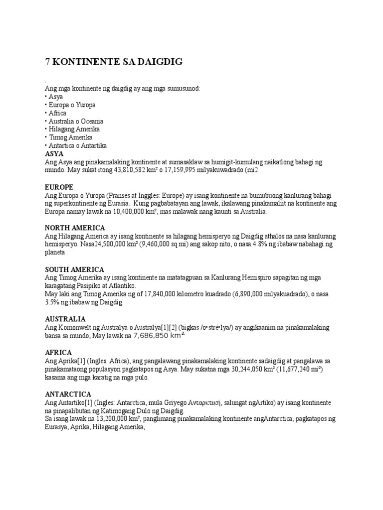 8272019 Ano Ang Pinakamalaking Kontinente Sa Buong Daigdig. 2 See answers peermurtaza1275 peermurtaza1275. 2 question Ang pinakamaliit na talampas sa daigdig.