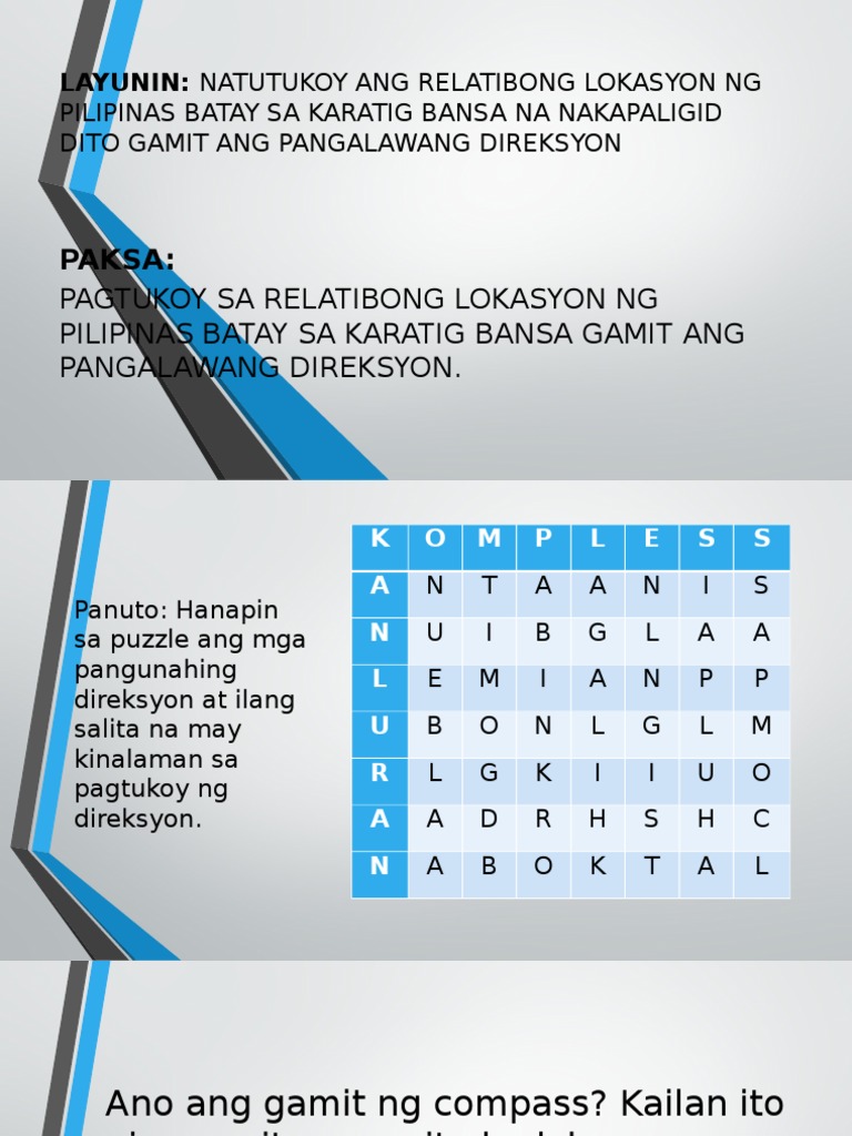 Thailand Pangunahing Direksiyon Anyong Lupa at Anyong Tubig Kung pangunahing direksiyon ang pagbabatayan ang Pilipinas ay napapaligiran ng mga. Tunghayan natin ito sa. 7242016 bukal ang tubig na nagmula sa ilalim ng lupa Tiwi Hot Springs pinagkukunan ng enerhiya sa Bicol 17.