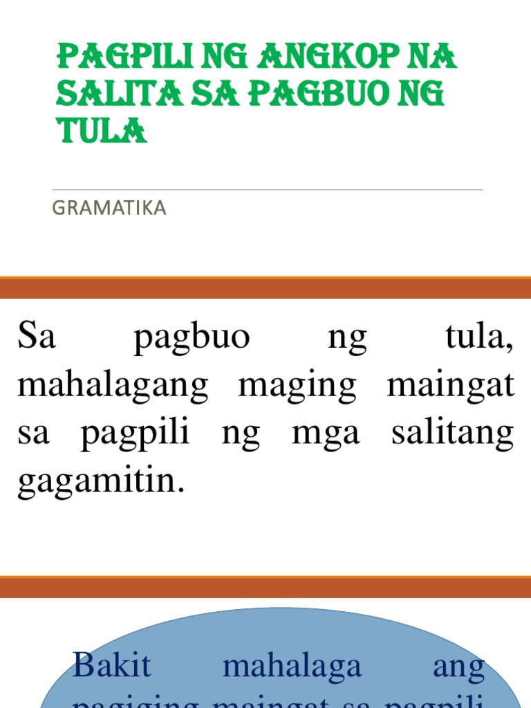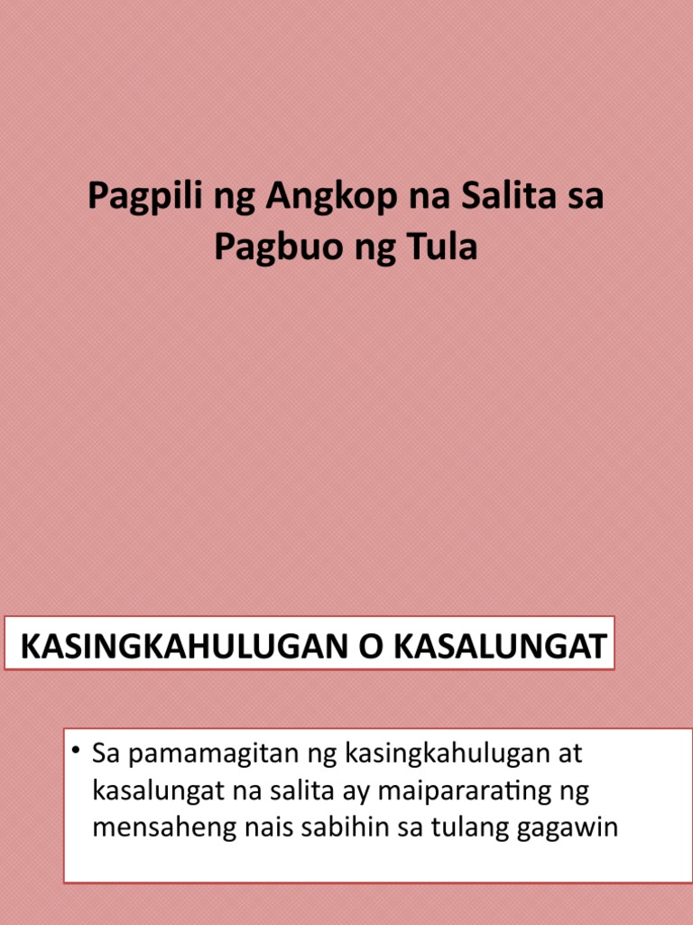 Pagpili Ng Angkop Na Salita Sa Pagbuo Ng Tula