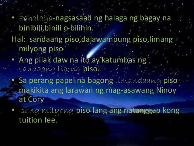 Tatalakayin kung Ano nga ba ang kahulugan ng pangungusap ayon sa mga sa. Pamilang na palansak o papangkat-pangkat Pagsasama-sama ng anumang bilang Halimbawa. Sep 23 2015 Dalawang uri ng pang uri 1.