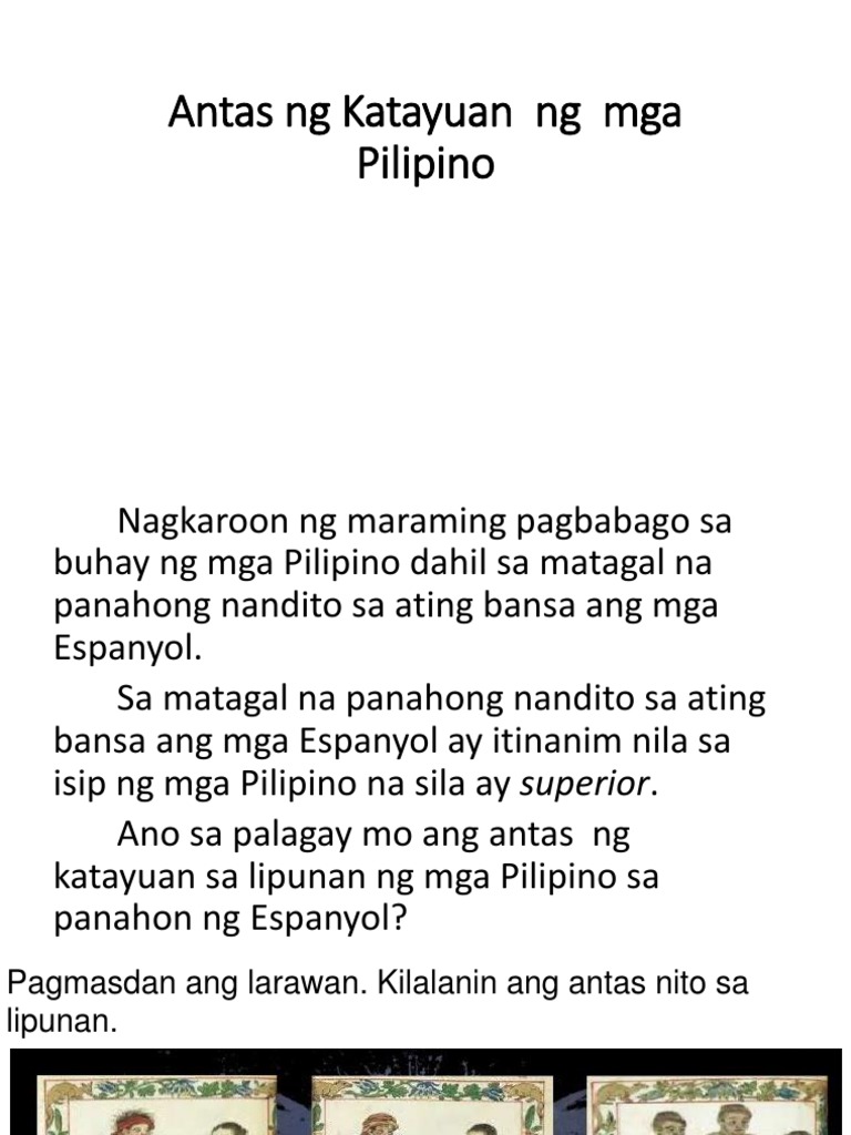 Antas Ng Katayuan Ng Mga Pilipino Sa Panahon Ng Espanyol Grade 5