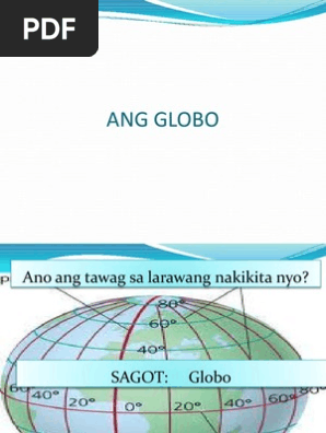 Ang globo ay ginagamit upang higit na maunawaan ang daigdig. Lugar-ito ay tumutukoy sa mga katangiang pisikal ng mga lugar katulad ng mga anyong lupa at. 5ito ang mga pahigang guhit na paikot sa globo na kahanay ng ekwador.