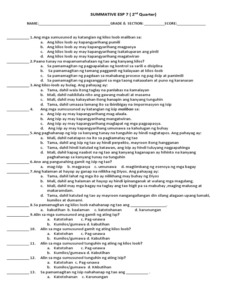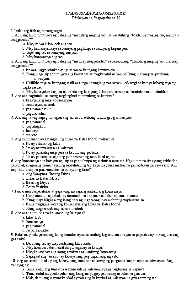 Doc Edukasyon Sa Pagpapakatao 10 3rd Qrtr Examg Neil Masangcay Academia Edu