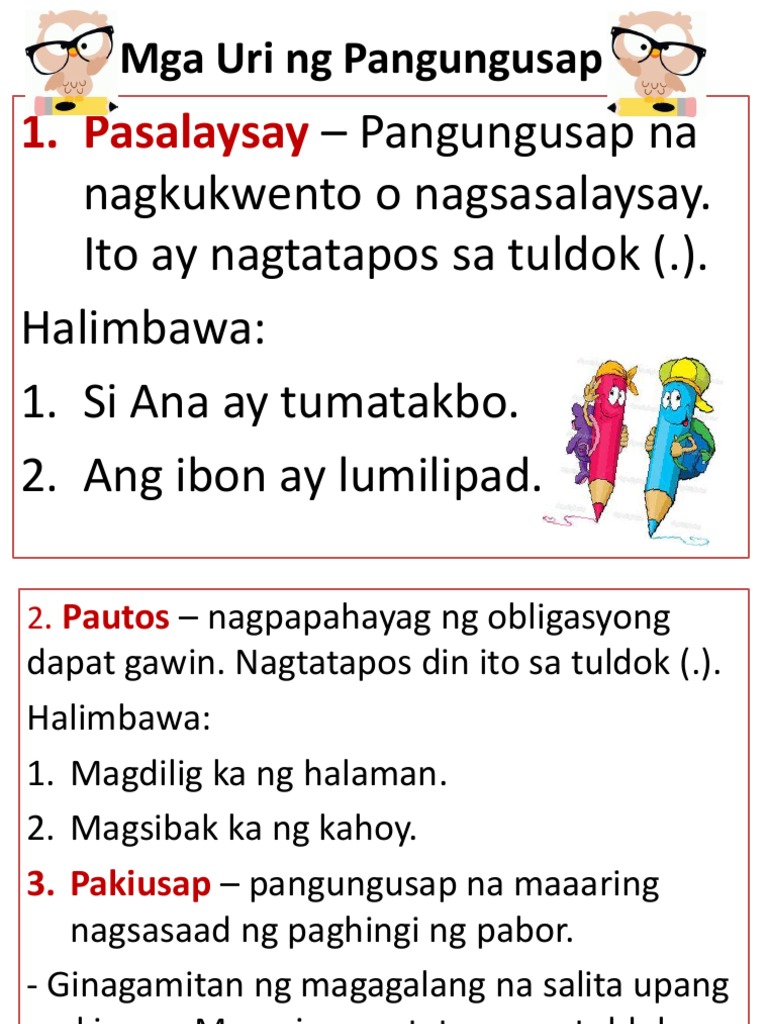 This worksheet asks the student to write statements that describe each picture. The two 10-item worksheets below ask the student to convert declarative sentences pangungusap na pasalaysay into interrogative sentences pangungusap na patanong and interrogative sentences into declarative sentences. 21022017 Magbigay ng limang pangungusap na Pasalaysay Patanong Pautos Padamdam Pangungusap na pasalaysay ito ang tawag sa pangungusap kung ang isang pangungusap ay nagsasalaysay o nagkukwento ng mga pangyayari.